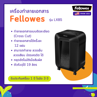 ทำลายเอกสารได้ครั้งละ 9-10 แผ่น (A4/70 แกรม) แบบตัดย่อย (Cross Cut) 4 x 35 มิลลิเมตร