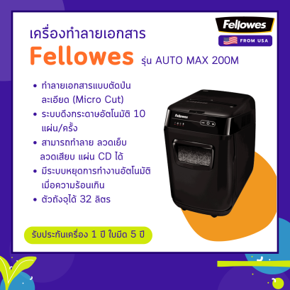 ใส่เอกสารในการทำลายได้ถึง 200 แผ่น แล้วปล่อยให้เครื่องทำลายเอกสารแบบอัตโนมัติ จะดึงกระดาษไปทำลายเรื่อยๆ แบบ AUTO